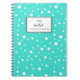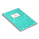 Turquoise Snow Drops Pattern Personalized Notebook. Customizable modern notebook featuring a turquoise and white snow pattern. This modern and chic notebook will be perfect as a personalized gift.