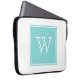 Add your initials or other text to customize this simple and modern Square Monogram Laptop Sleeve in turquoise and white. This trendy and chic case would make a perfect gift and is great for protecting your phone.