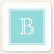 Add your initials or other text to customize this simple and modern Square Monogram Paper Coaster in turquoise and white. This trendy and chic coaster would make a perfect gift.
