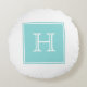 Add your initials or other text to customize this simple and modern Square Monogram Round Pillow in turquoise and white. This trendy and chic pillow would add a classic touch to any decor or make a perfect gift.