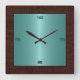 Turquoise Stainless Steel Modern Burlap Border #2 Square Wall Clock
