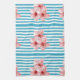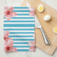 Turquoise Stripe Hibiscus Flower Kitchen Towel