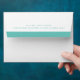 Invitation and announcement mailing envelopes with printed return address and turquoise teal blue stripe on the back flap and inside.