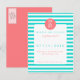 A bright turquoise and Coral Striped,Modern Save the Date Postcard. All my invitations are available with several matching accessories. This save the date card can also be used for a general party invitation or converted into an entire invitation suite with several matching accessories. If you have any questions or special requests for your invitations, let me know how at theroyaldesignstudio@yahoo.com Thank you for browsing!