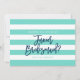 This preppy Will You Be My Junior Bridesmaid card features the words "Junior Bridesmaid" in trendy blue brush script against a turquoise and white stripes background. Card has a matching blue back side. Check out matching Bridal Shower / Wedding items here https://www.zazzle.com/collections/119250194970828530?rf=238364477188679314