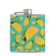 Yummy taco gift ideas. Taco with cheese, cheese, tomatoes, lettuce, sour cream and ground beef with a turquoise background. The perfect gift for taco lovers, chefs and cooks.
