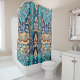 Turquoise Tan Floral Damask Tile Western Style Shower Curtain