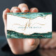 Turquoise Teal Agate Gold Glitter Monogram Script Business Card