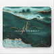 Turquoise Teal Agate Gold Glitter Script Monogram Mouse Pad