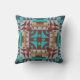 Turquoise Teal Blue Dark Red Brown Gray Tribal Art Throw Pillow