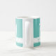 Modern and minimalist solid color teal, turquoise blue color block mug with custom monogram or initial and name or wording. –– Change fonts and stripe or text colors by clicking CUSTOMIZE.