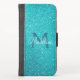 Turquoise Teal Blue Sparkly Glitter Monogrammed iPhone Wallet Case