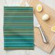 Turquoise Teal & Burnt Orange Stripes Kitchen Towel
