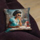Embrace the serene elegance of the past with our "Turquoise Tranquility" throw pillow. This exquisite piece transports you to the golden age of glamour, showcasing a poised Black woman in classic sunglasses, embodying the sophistication of vintage style. Set against a backdrop of swaying palm trees and a vivid turquoise ambiance, this pillow encapsulates the vibrant essence of a bygone era. Perfect for those who appreciate the finer details of retro chic, it adds a touch of timeless beauty to any room. The rich, teal-blue tones are complemented by the warmth of a tropical setting, making it an ideal accent for both modern and vintage-inspired interiors.