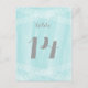 Classic and elegant Watercolor Deco Wedding Table Number Postcard with a modern striped criss-cross hatched art deco design in white and a subtle aqua watercolor look background. This simple and chic table card can be easily customized with your wedding details. For more personalization options, click Customize.
