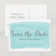 Trendy and stylish Watercolor Save the Date Postcard with a rectangle brushed watercolor look turquoise background. This elegant and modern save the date card is easy to customize with your wedding details. For more customization options, click on the Customize It button.