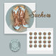 Western Cowboy boots feathered with a turquoise border are featured on this envelope seal.