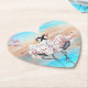 Japanese tancho cranes acrylic painting is beautiful on this cute heart shaped coaster. Asian red top tancho cranes dancing in a puddle of light blue and cyan water is a romantic design for wedding guest gifts. Delicate turquoise, sienna beige brush strokes are beautiful behind black and white love birds. Perfect for swan, love birds, cranes, or origami inspired wedding themes.
