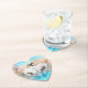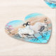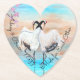 Japanese tancho cranes acrylic painting is beautiful on this cute heart shaped coaster. Asian red top tancho cranes dancing in a puddle of light blue and cyan water is a romantic design for wedding guest gifts. Delicate turquoise, sienna beige brush strokes are beautiful behind black and white love birds. Perfect for swan, love birds, cranes, or origami inspired wedding themes.