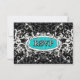Turquoise & White Damask Wedding RSVP Reply Cards