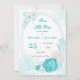 romantic turquoise and white flowers on a beautiful geometric frame save the date cards.