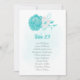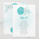romantic turquoise and white flowers on a beautiful wreath table number seating chart card.