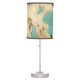 The lamp looks exactly like the picture, bright and colorful. The lamp shade is plastic not what I expected, however I love it! The printing is clear and the name can easily be read.