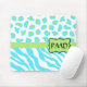 Turquoise, White & Green Zebra & Cheetah Custom Mouse Pad