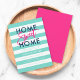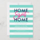 Chic Housewarming Party invitation featuring the words "Home Sweet Home" in blue sans serif and pink trendy script all against a turquoise and white stripes background. Card has a matching pink back side. Check out other new home items here https://www.zazzle.com/rosewoodandcitrus/new%20home?rf=238364477188679314