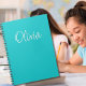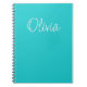 Cute and girly school and office desk accessory featuring an elegant turquoise background with simple and minimalist, yet modern custom white and teal typography for your personalization. Would make a beautiful back to school notebook, ideal for both teachers and students alike.