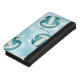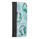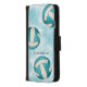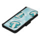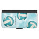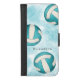 Women's volleyball iPhone wallet case has an artsy vibe with three turquoise and white paneled volleyballs arranged on an abstract texture look lighter turquoise background - the turquoise vball panels sport a swirled abstract effect for a chic yet sporty appeal - customize with her name - by katz_d_zynes