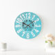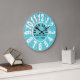 Turquoise Wood Beach House Black Big Numbers Large Clock