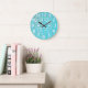 Beach house wall clocks to personalize with your family name and established year. Turquoise wall clocks with a distressed wood print for a beach themed room decor.
