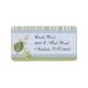 This bright colored address label has turtles and a goldfish swimming around bubbles in blue. The top has stripes in blue, green and yellow.