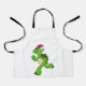 Great color and even though I ordered the kid size, it covers well enough to use during the holidays. I am not a big woman and prefer a shorter apron. I stand 5"6" and the length of the garment goes to mid-thigh. The tie straps fit well at my waist and even though there is no neck strap adjustment, the opening is plenty big enough. I am happy with the size and fit. I am sharing my apron with my 10 year old grandson, too! The color is vibrant and looks good, as shown on the website. The stitching looks strong and reinforced. Photographed is front side and back side of the apron, reinforced straps and coloring. My phone camera may not be the best at showing the details.
