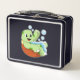 This is a standard metal lunchbox that appears to work just fine. We designed this box ourselves with an uploaded photo and custom text on the front and back. It looks absolutely beautiful except the front of the lunchbox is not centered like it shows in the photo. The print borders don't align with the inset flat part of the box where the preview photo online showed it perfectly centered in there. The back looks nice and centered though.
