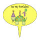 Turtle First Birthday cake topper, cute and colorful with a turtle wearing a party hat, a single candle, a balloon, number 1, and text that reads "It's My Birthday!". We have the matching Turtle First Birthday T-shirts, buttons, stickers, and more!