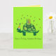 Wish a friend a turtley awesome birthday with this adorable turtle greeting card! His tortoise shell is holding the candles, or is that the cake too? The card has a contrasting color inside that is easy to write on.
