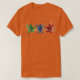 My 11 yo wore adult XL (5’7” 165#). The 8yo is small framed. She wore adult small and tied it in the back. Grandma wore adult large with long sleeve shirt underneath. Tall girl adult medium. Dark haired male adult large. Good quality dark Heather gray, Gildan brand shirt. -it was next up from basic choice and cost about $20 per shirt. Not too thick or thin. Washed and dried well, no major shrinkage. Not see-through. Can wear a bra under it fine. Screen print is just as shown and well done, front and back.
