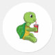 Turtle with Drinking mug with Straw Classic Round Sticker