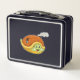 This is a standard metal lunchbox that appears to work just fine. We designed this box ourselves with an uploaded photo and custom text on the front and back. It looks absolutely beautiful except the front of the lunchbox is not centered like it shows in the photo. The print borders don't align with the inset flat part of the box where the preview photo online showed it perfectly centered in there. The back looks nice and centered though.