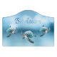 This bathroom door sigh features 3D turles on a blue bokeh background.