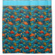 A Colorful Orange And Green Turtle Shower Curtain For The Bathroom