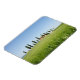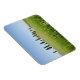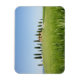 Rectangular souvenir photo magnet with a farmhouse with cypress trees and waving wheat grains in spring in the Val d’Orcia valley in Tuscany, Italy.