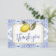 Thank You Note Cards featuring watercolor lemons complemented by a classic blue/white Tuscan tile pattern with modern & free-hand-lettered typography font. Personalize with your own wording/details! For further customization, please click the "Customize it" button and use our design tools to modify this template. Not all artwork and text can be modified.