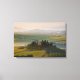 Canvas landscape photo print of the famous Podere il Belvedere house surrounded by hills and cypress trees at sunrise on a foggy morning in a landscape in Orcia valley in Tuscany, Italy.