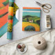 Colorful ,vibrant ,expressive beauty of Italian countryside and fields, contemporary acrylic painting in bright yellow,orange,red,blue,green colors on canvas 2008 ,Firenze,Tuscany-Italy