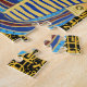 This colourful jigsaw puzzle is based on my painting of the golden mask, of the Egyptian boy King Tutankhamun, with his cartouche forming a patterned background.