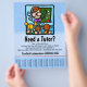 Tutoring can be a great way to earn extra money. This adorable, eye catching flyer is perfect to hang in local businesses, churches, synagogues, libraries or parks. Cut between the contact info at the bottom so that people can just tear off your number so that they don't forget! The text and color are fully customizable.