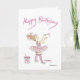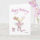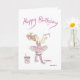 A little girl in a pink tutu painting the words Happy Birthday in the color pink.